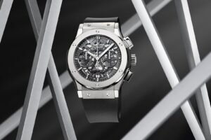 The watch’s unique design is accentuated by its intricate skeleton dial, which not only offers a glimpse into its mechanics but also adds a modern flair. The understated elegance and versatility of the Hublot Classic Fusion Aerofusion Titanium make it suitable for various occasions, whether formal or casual.