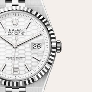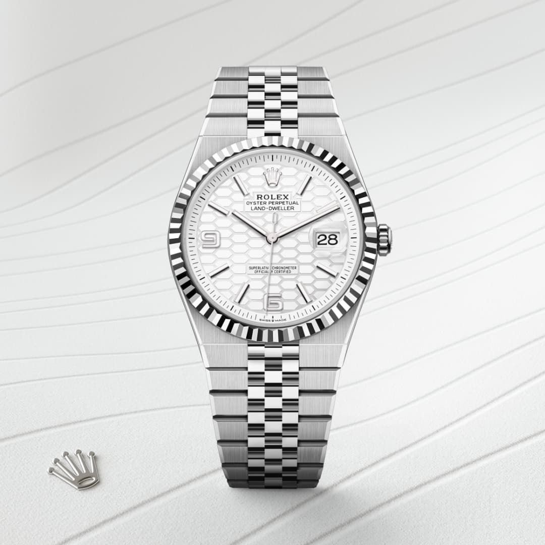 The Rolex Land-Dweller 127336 marks a bold new chapter in Rolex’s lineup for 2025, introducing a fresh category that bridges the brand’s tool-watch heritage with elevated, dress-sport refinement. Crafted entirely in platinum, the 41mm Oyster case exudes weight, presence, and unmistakable prestige. The watch features Rolex’s signature fluted bezel, reimagined here in platinum for the very first time—an instantly recognizable detail that amplifies its exclusivity.